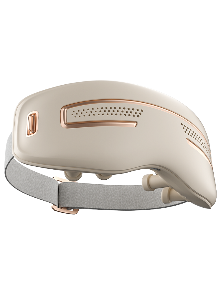 Ergonomically contoured to the eye and temple zones, the mask delivers even, pressure-free contact while activating targeted microseismic massage points.